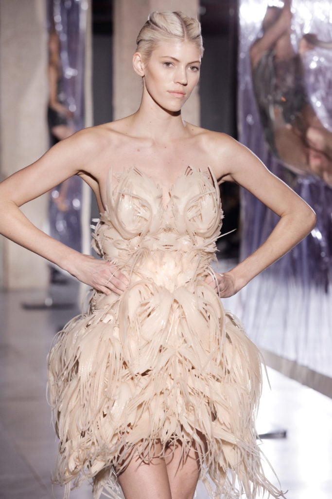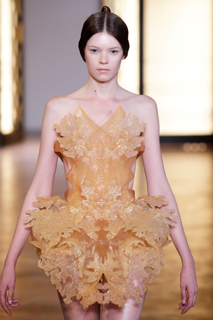 Mi primera colección de impresión 3D lista para usar fue lanzada en 2015 bajo el nombre «Sporophyte». Los diseños fueron impresos por Stratasys utilizando la tecnología Polyjet. En colaboración con una de las casas de haute couture más famosas de París, así como con la diseñadora holandesa Iris Van Herpen y la diseñadora austriaca Marina Hoermanseder, creé impresiones en 3D que incluían creaciones de moda para sus colecciones. Estas colaboraciones contribuyeron a mi visión y muestran la influencia de las nuevas tecnologías en el campo de la moda.