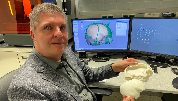 „Werner, wir haben unser erstes Kind,“ – das waren die Worte, mit denen Neurochirurg und 3D-Druck-Pionier Johannes Pöppe am 6. Januar mit dem IT-Spezialisten Werner Wurm telefonisch in Verbindung trat, um eine Schädeldecke für den 10-jährigen Felix drucken zu lassen. Dieser wurde nach einem Unfall im Wald mit einem Metallstück im Schädel ins Salzburger LKH eingeliefert und konnte dank hervorragender ärztlicher Hilfe und 3D-Technologie am Freitag, dem 2. Februar gesund entlassen werden. Seit 2023 ist es dem Uniklinikum des Salzburger Landeskrankenhauses (SALK) möglich, 3D-Druck direkt vor Ort durchzuführen. Bisher erhielten bereits 24 Erwachsene einen Teil der Schädeldecke aus dem 3D-Drucker der SALK, aber noch keine Kinder. „Dass eine im Haus selbst 3D-gedruckte Plastik bei einem Kind gemacht worden ist, ist unserer Kenntnis nach das erste Mal passiert“, sagt Neurochirurg Pöppe. Und das womöglich weltweit.